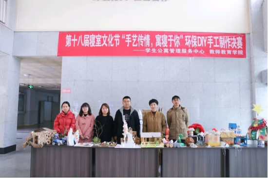 为深入学习宣传贯彻党的十二大精神,增强寝室成员之间的团队凝聚力,调动学生参与环保项目的积极性,由永利集团3044官网欢迎您学生公寓中心和永利集团3044官网欢迎您联合举办的“手艺传情,寓寝于你”环保DIY手工制作大赛决赛于2023年3月2日上午在博文楼一楼大厅举行。学生公寓管理中心张磊、永利官网党委副书记王文娟、副教授纪瑞祥,专职辅导员洪双、赵会辉、魏靖、杨文明老师出席此次活动并担任评委。