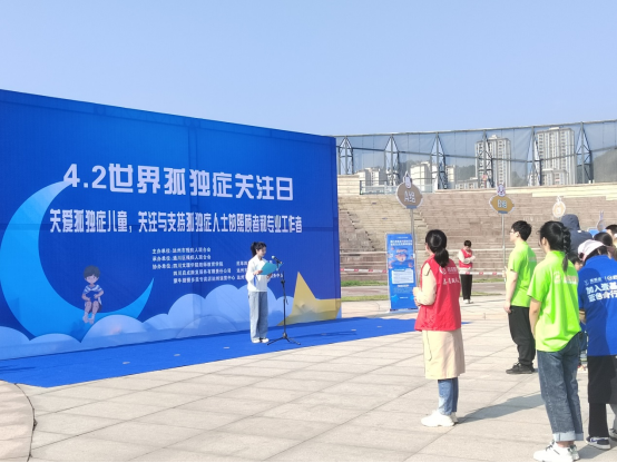在世界第16个孤独症关注日来临之际,为动员全社会力量关心帮助孤独症人士,4月1日上午,永利官网特殊教育专业师生参与由达州市残疾人联合会主办的达州市2023年世界孤独症关注日主题宣传活动“爱让世界蓝起来—蓝色行动”。本次活动在巴山大剧院广场举行,70余名孤独症儿童及亲属、社会志愿者共计200余人参加此次活动。