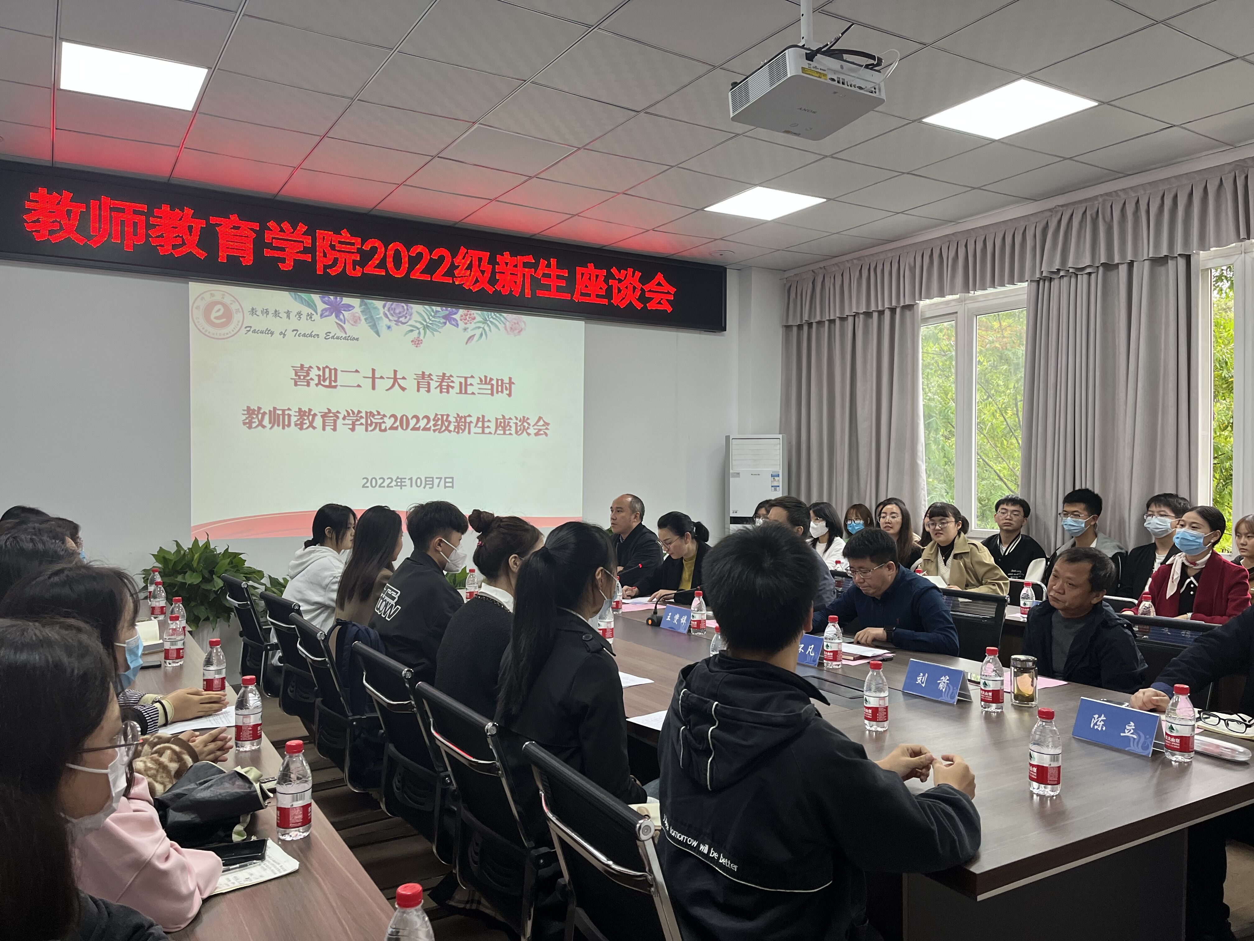 2022年10月7日16:20,我院在博文楼206A会议室举行2022级新生座谈会。永利集团3044官网欢迎您党总支书记王燮辞、院长叶怀凡、党总支副书记王文娟、教师教学发展中心副主任刘箭,各教研室主任、学工办主任及2022级带班辅导员出席本次会议,与新生代表面对面亲切交流,共叙情谊。本次会议由副书记王文娟主持。