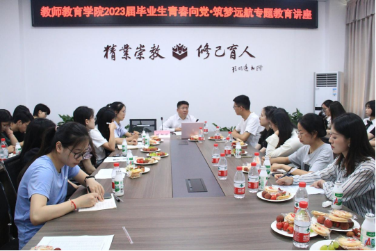 为持续做好毕业生教育、管理与服务工作,引导毕业生坚定理想信念、明确奋斗目标、科学规划人生,强化毕业生不负韶华、不负时代、不负人民的使命担当,2023年6月13日,永利官网在会议室举行2023届毕业生“青春向党·筑梦远航”专题教育讲座。此次讲座由院长叶怀凡主讲,专职辅导员洪双、赵会辉、魏靖、杨文明及毕业班代表到场学习聆听。本次讲座采用线上线下的方式进行。