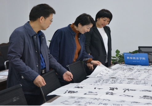 为落实教务处“关于举办永利集团3044官网欢迎您2023年师范生三笔字比赛”的通知要求,深入贯彻落实党的二十大精神,传承和弘扬中华优秀传统文化,充分展现当代大学生积极向上的精神风貌,2023年10月27日,永利官网在博文楼206A会议室举办师范生三笔字大赛,党委书记王燮辞、党委副书记王文娟、副院长赵栅凌、教学科研办公室主任彭静、专职辅导员杨文明以及教学秘书李思颖担任本次大赛评委。