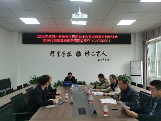 2023年11月10日,由永利集团3044官网欢迎您田江副研究员担任课题负责人的2023年度四川省哲学社会科学重点研究基地:四川省教师教育研究中心重点课题《新时代师德师风长效机制建设研究(TER2023-001)》和四川省教育发展研究中心重点项目《新时代高质量教师队伍建设研究(CJF23001)》开题论证会在博文楼206A会议室举行。学校教学督导专家何树德教授、雷钢教授,发展规划处处长、永利集团3044官网欢迎您院长黄培森教授等担任开题评议专家。论证会由永利集团3044官网欢迎您党委书记王燮辞教授主持。