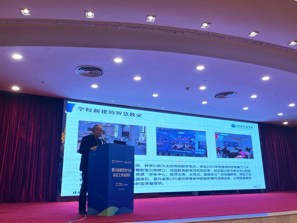师范类专业认证是贯彻落实习近平新时代中国特色社会主义思想和党的二十大精神,深化新时代教师教育改革、全面保障和提高师范类专业人才培养质量、推进师范类专业内涵式发展的重要举措,是我国高等教育质量保障体系的重要组成部分。为进一步学习师范类专业认证的要求与标准,提升我校师范专业的办学质量,2023年11月30日至12月1日,副校长程碧英率队参加了由四川省教育厅举办的师范类专业认证工作培训会。培训期间,程碧英一行认真学习了师范类专业认证的最新精神,聆听了认证专家的精彩讲座,对师范类专业认证的必要性和如何开展认证工作有了更加透彻的领悟。
