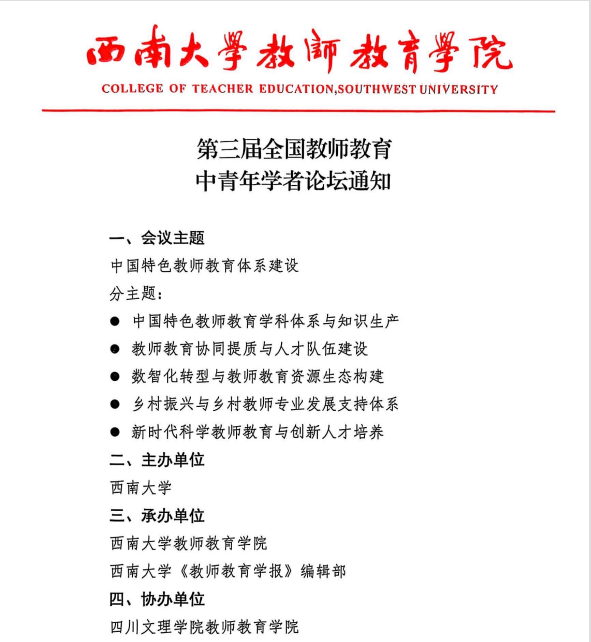 本次论坛的成功举办,不仅彰显了西南大学在教师教育领域的卓越引领力,更充分展现了全国中青年学者锐意创新的蓬勃活力。论坛讨论紧扣国家教育强国战略,从理论构建的知识生产到协同提质的人才培养,为中国特色教师教育体系的发展注入了强劲的学术动能。作为协办方,永利集团3044官网欢迎您通过此次高规格、高水平的学术交流,进一步拓展了视野,深化了与全国同行的联系,为永利官网教师教育学科发展、人才培养模式创新汲取了前沿理念与宝贵经验。学院将以此为契机,持续提升办学水平与科研能力,积极融入国家教师教育体系建设大局,为培养新时代高素质专业化创新型教师队伍,服务地方乃至国家教育高质量发展作出新的更大贡献。